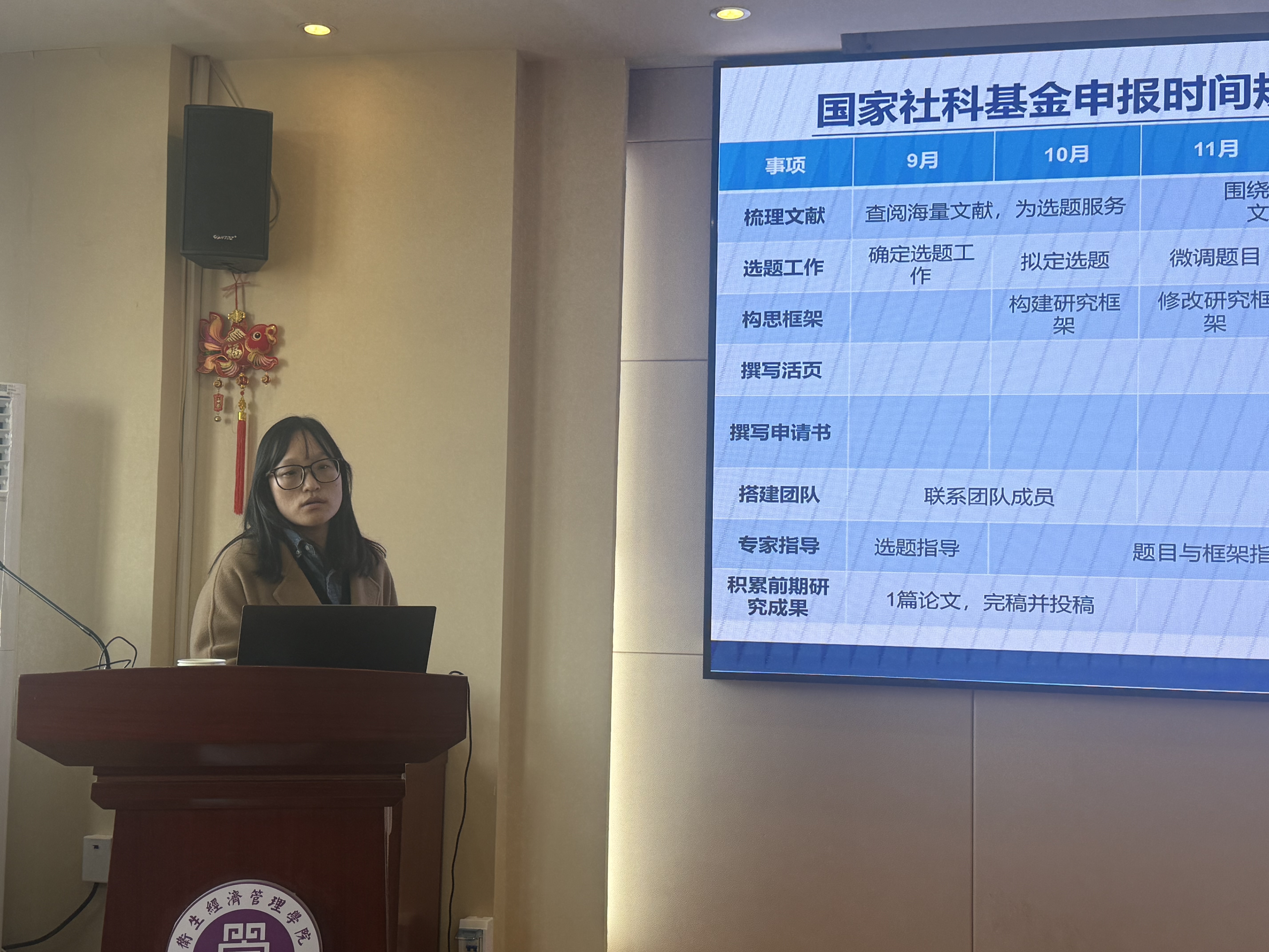 是沁副教授则聚焦国家社会科学基金申报实务,以时间节点为主线,全面梳理了从选题酝酿、框架搭建、内容撰写到材料打磨的全流程要点。她结合自身申报实战经历,重点分享了选题如何平衡理论深度与现实意义、文献综述如何凸显研究缺口、研究内容如何紧扣核心问题等关键技巧,并针对申报过程中常见的时间规划误区、文本表达漏洞等问题给出具体规避建议。是沁副教授的分享干货满满,有效破解了青年教师在社科基金申报中的诸多困惑。